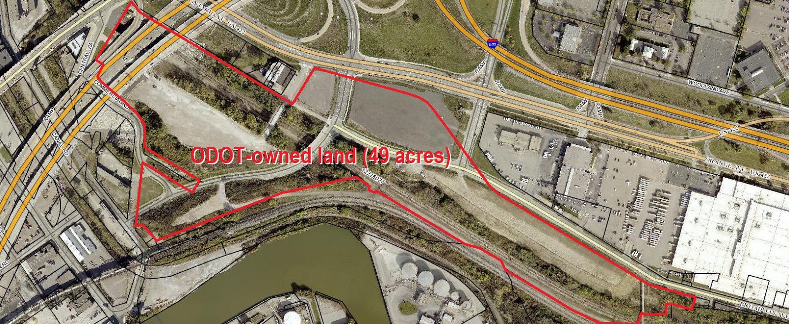 3. Intermodal Yards — Formerly the Norfolk Southern intermodal railroad yards, this vast area of vacant land was acquired by the Ohio Department of Transportation in 2011 prior to its reconstruction of the Inner Belt highway. It and most of the surrounding vacant land, suitable for development, remains publicly owned thereby reducing acquisition costs.