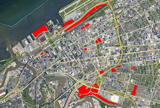 There are multiple underutilized and large properties owned by the city, county and state in and near downtown. Some of those properties, like the lakefront land north of First Energy Stadium, are already spoken for.