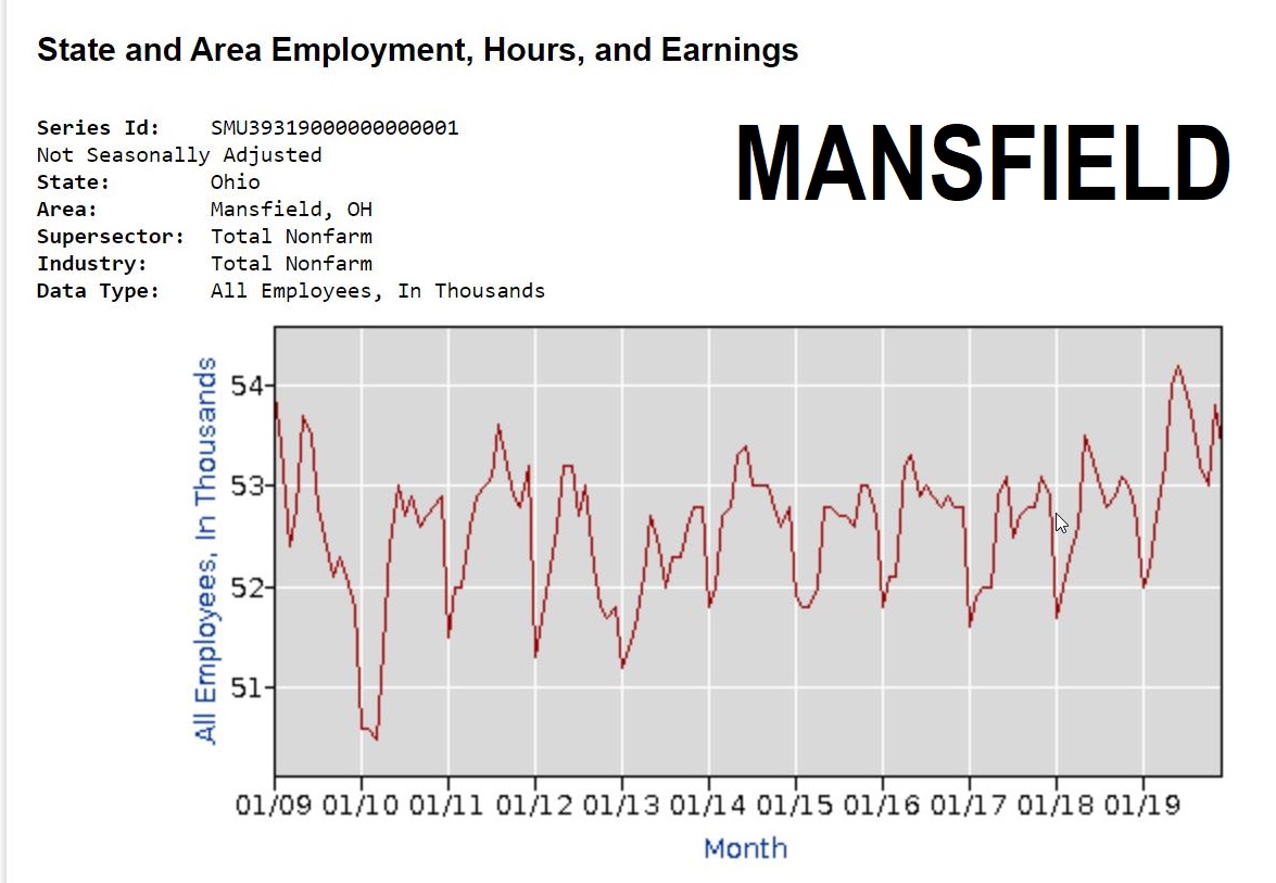 Here are charts showing the changes in employment in Ohio’s metro areas in the past decade: