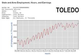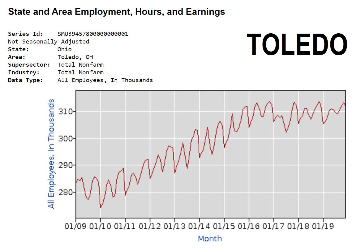 But it gets more compelling than that. If you add in the employment data from Ohio’s next three largest metro areas — Dayton, Toledo and Akron — the employment in the state’s six largest metro areas grew by 245,000 jobs.