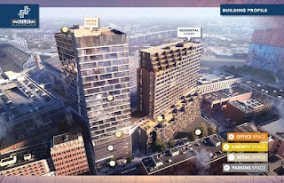 | This rendering of nuCLEus shows the layout and location of the proposed development, looking southward (Stark). |