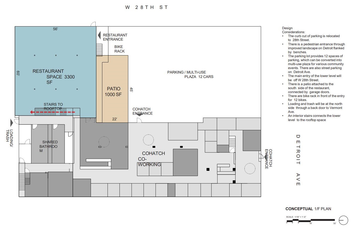 Additionally, COhatch’s preliminary plans show 12 proposed off-street parking spaces for cars and a rack for parking 12 bicycles. COhatch said it is developing a local leadership and investor team for its Cleveland-area locations.
