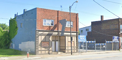 | This two-story building and its neigboring parking lot at 5100 Lorain Ave. once housed a used-car dealership. By Summer 2021, it may be the Greek Village Grille (Google). |