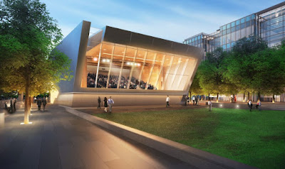 - A new Center For Excellence (may have a new name) measuring about 50,000 to 80,000 square feet on Public Square featuring a conference center for employee training and corporate meetings, a small company museum (their existing museum is only 6,000 square feet) and possible retail space. A comparable structure may be Pickard Chilton’s smaller, 22,000-square-foot Devon Energy Center Auditorium, across the street from the BOK Park Plaza.