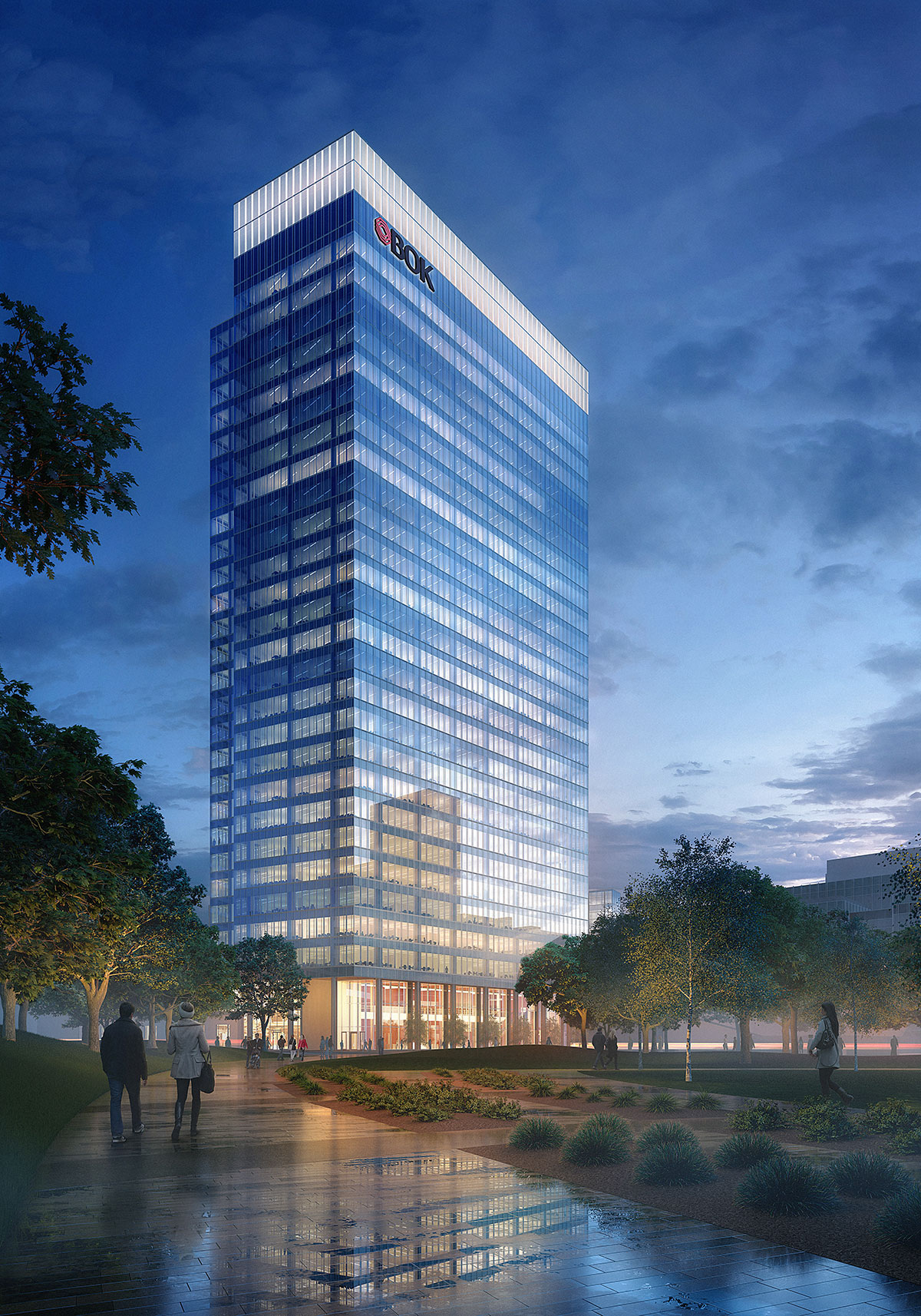 - A 1-million-square-foot office tower at the northwest corner of Superior Avenue and West 3rd Street. As reportedly earlier, the modern glass box tower will reportedly look similar to Pickard Chilton’s (also SHW’s HQ architect) 27-story, 700,000-square-foot BOK Park Plaza in Oklahoma City.