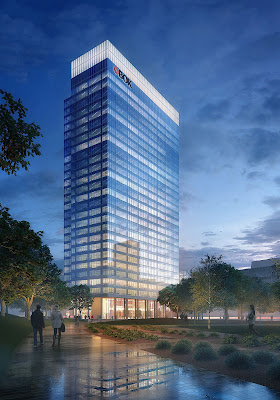But SHW’s HQ will reportedly be a little taller (about 30-35 stories) and have slightly larger floorplates (nearly 30,000 square feet vs 25,000 at BOK). Average floor heights above the lobby reportedly will be only 14 or 15 feet, suggesting a building 450 to 500 feet tall.