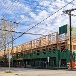 Looking north from East 125th Street toward Mayfield Road and the proposed Casa d’Angolo condominiums, the modern structure stands out yet is actually smaller than some nearby buildings like the new La Collina apartments built several years ago a block away on Mayfield. It also has modern lines similar to the VIA 126 townhouses being built by the same development team as Casa d’Angolo (Maschke).