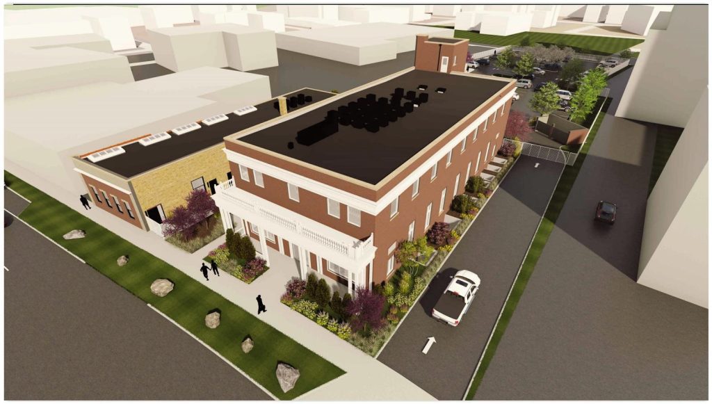 The rehabilitation will preserve the historic façade, including its signature pilasters and window openings, and convert this building into eight residential units — a total of 30 apartments among the two connected projects.