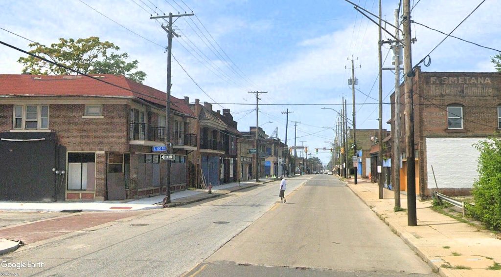 In 2021, a person could stand in the middle of Buckeye Road at East 120th Street and not get hit by a car. Since then, the street was rebuilt and so were several buildings. Much of the historic building stock in this stretch has survived in good enough condition so it can be renovated and reactivated with historic tax credits (Google).