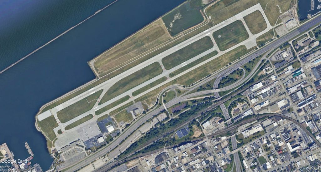 Burke Lakefront Airport’s proximity to Downtown Cleveland is both an asset to Cleveland and, according to a city-commissioned study last year, an opportunity cost preventing the city from enjoying even more benefits from this huge lakefront site. Yet the airport cannot be closed unless other Greater Cleveland reliever airports offer the same or better facilities at Burke (NEOtrans). CLICK IMAGES TO ENLARGE THEM.