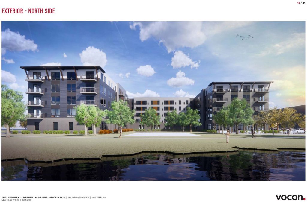 Some commission members pushed back on having so many surface parking spaces on the lakefront. But the developer responded that the parking would be shared with Landmark’s neighboring property, The Shoreline Apartments, 5455 N. Marginal. which has 130 parking spaces for 167 residences.