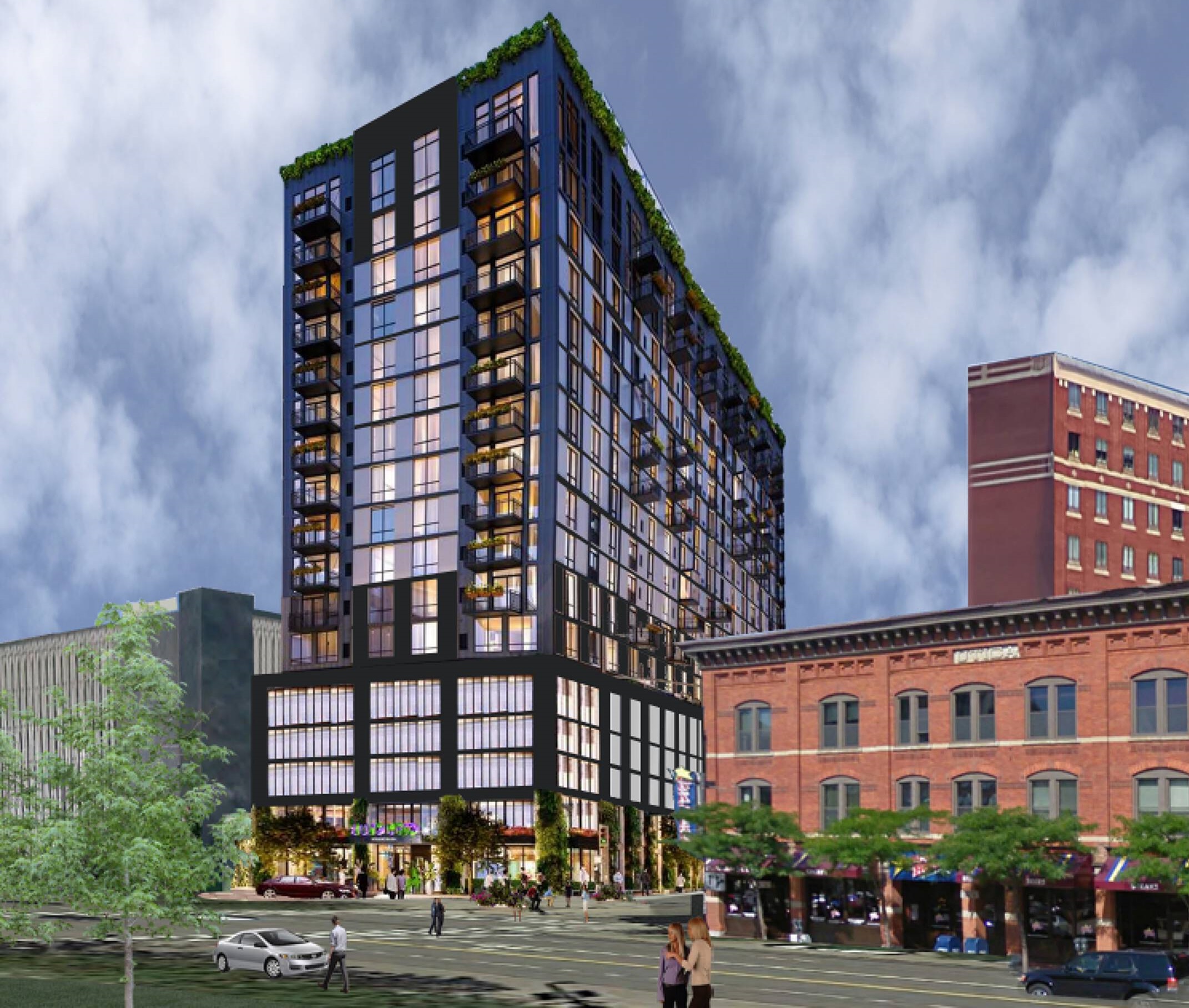 A smaller project was sought by Geis to test the downtown condominium market — The Avenue Condos. A five-story, 31-unit condo building started construction in 2019 at 1325 E. 12th St. But when the pandemic hit, it was redesigned while under construction to be an apartment building.