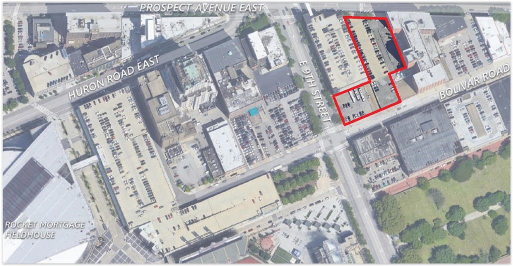 Last year, Bedrock Real Estate won city approval to demolish the Arena Parking Garage, 611 Huron Rd., replacing it with a 36-space interim parking lot. That parking lot was approved for one year but was renewed by the Planning Commission earlier this year.