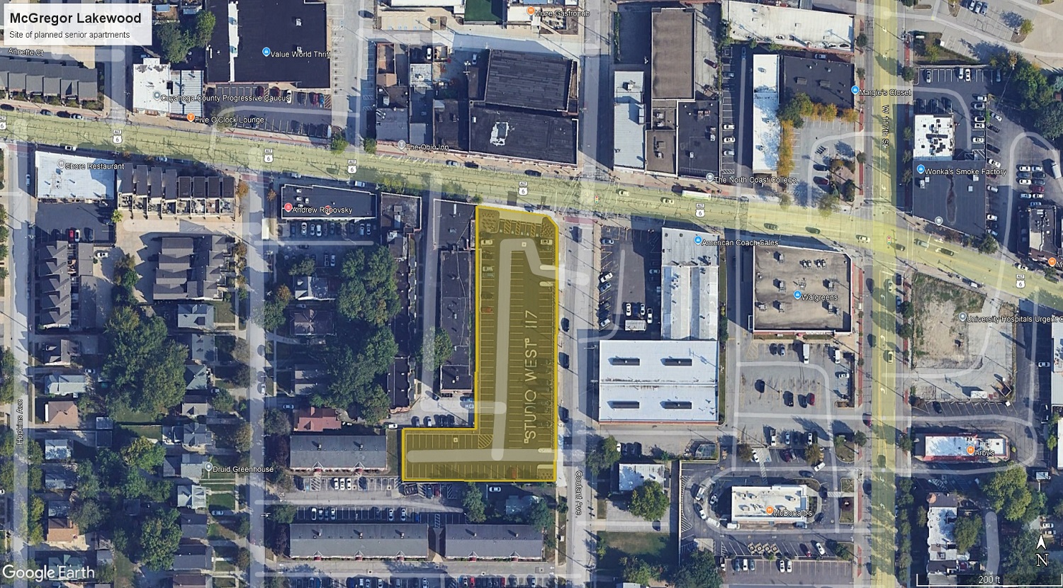 Even though the project is in Lakewood, Cleveland wishes to be notified when a developer seeks state financial assistance for an affordable housing development within one-half-mile of the City of Cleveland. This site is one block west of Cleveland.