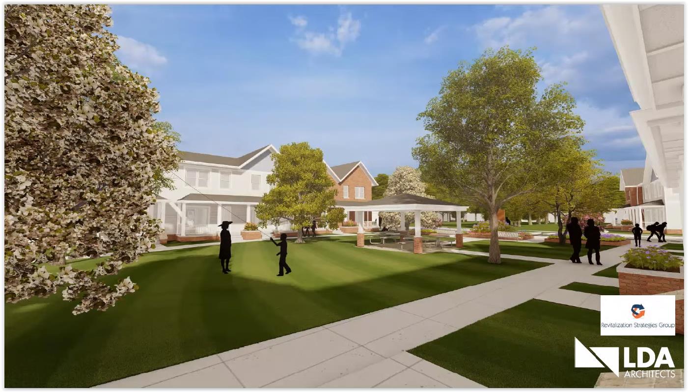 In the center of the new housing development, a community park is planned. Both the old and new plans have this green space included although they appear to have a different interface with the new street planned through the site (LDA).
