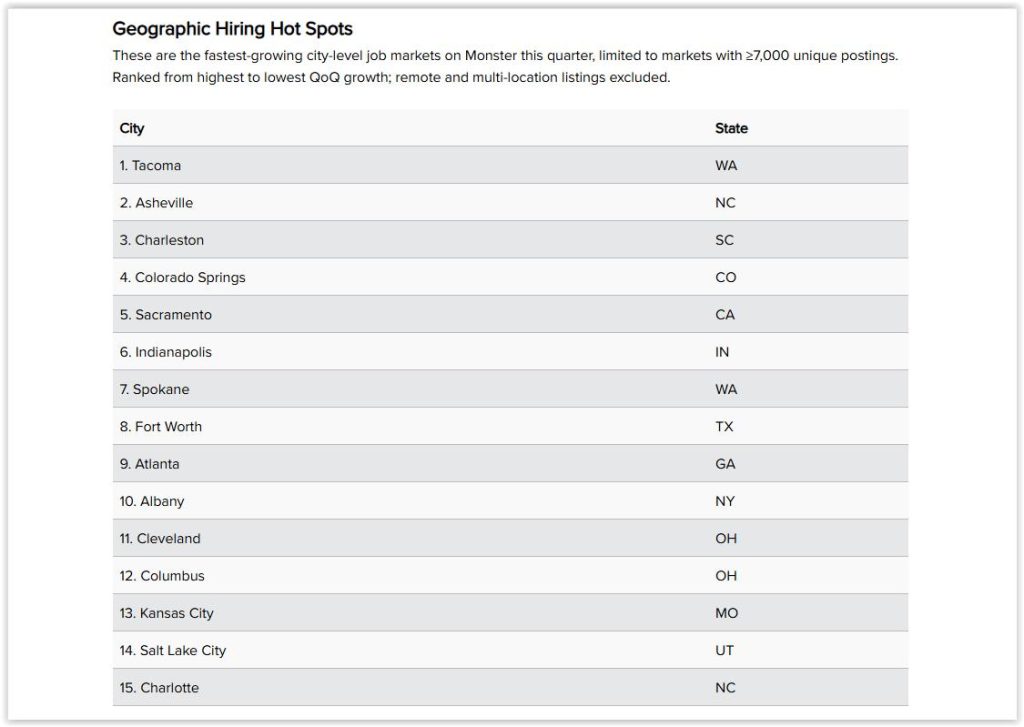 Because, according to job and career search Web site Monster.com, Greater Cleveland was one of the nation’s fastest growing job markets in the third quarter of 2025. The Q3 2025 Monster Job Market Report ranked Greater Cleveland as the 11th-best hiring hot spot in the United States.