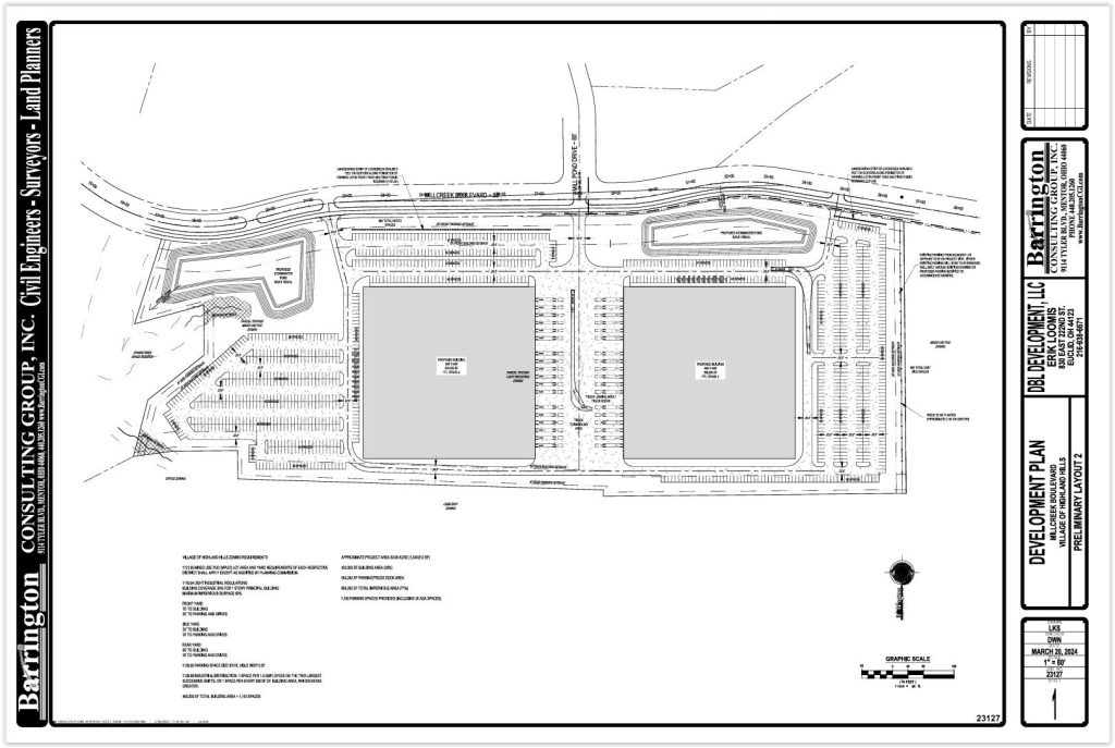 Demolition and preliminary development plans for the site will be submitted to the Village of Highland Hills in the coming weeks so site prep work can start next month, said Rico Pietro, a principal with DBL Development. The goal is to have the site “pad-ready” by spring 2026 so construction can begin.