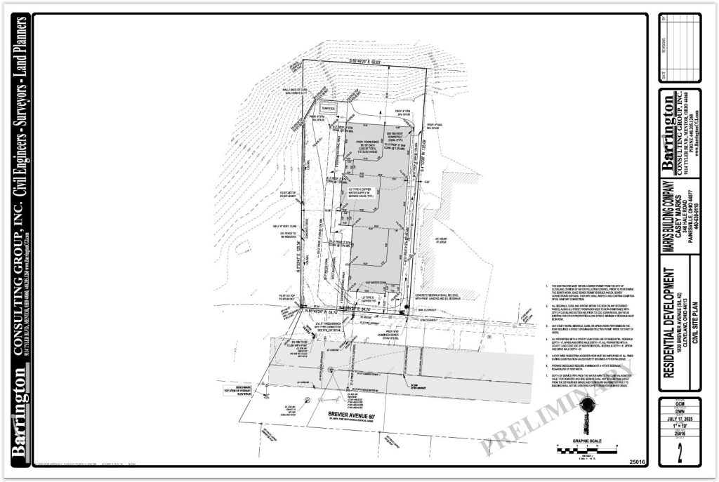Their largest Cleveland townhome project is under construction right now — five attached, three-bedroom townhomes at 1831 Brevier Ave., in Tremont, next to the newly opened Park Apartments. Tentatively, they’re called Brevier Place Townhomes.