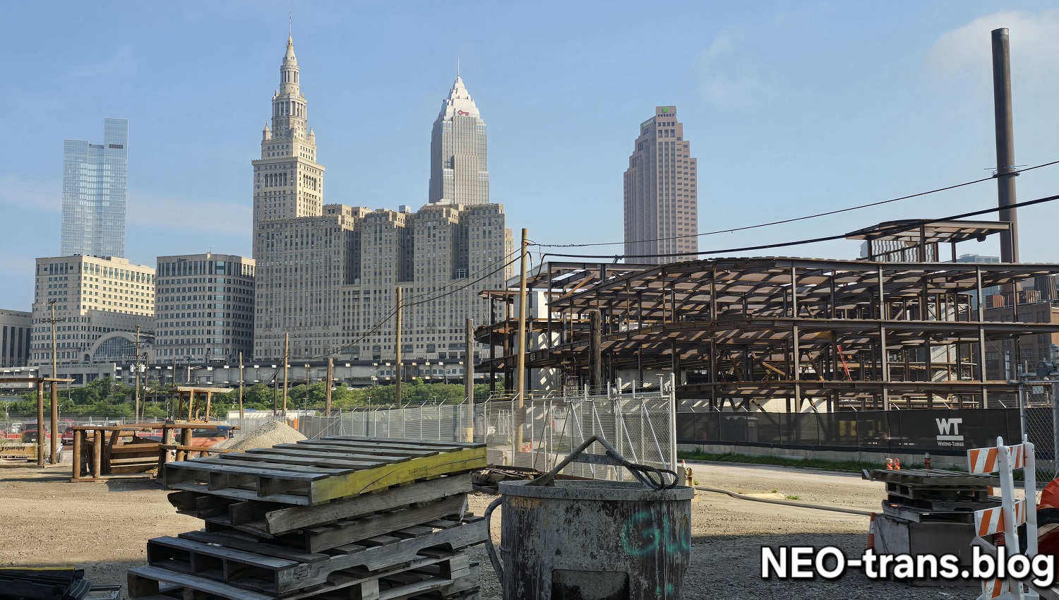 The Cleveland Clinic’s Global Peak Performance Center in the Flats South area near Downtown Cleveland will continue to be under construction through most of 2026. It is the first phase of Bedrock’s Riverfront development (NEOtrans).