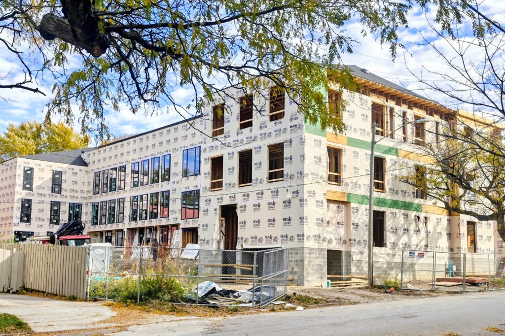 On what was previously a vacant lot, the project’s developers are constructing a 19-unit apartment building which recently topped out.