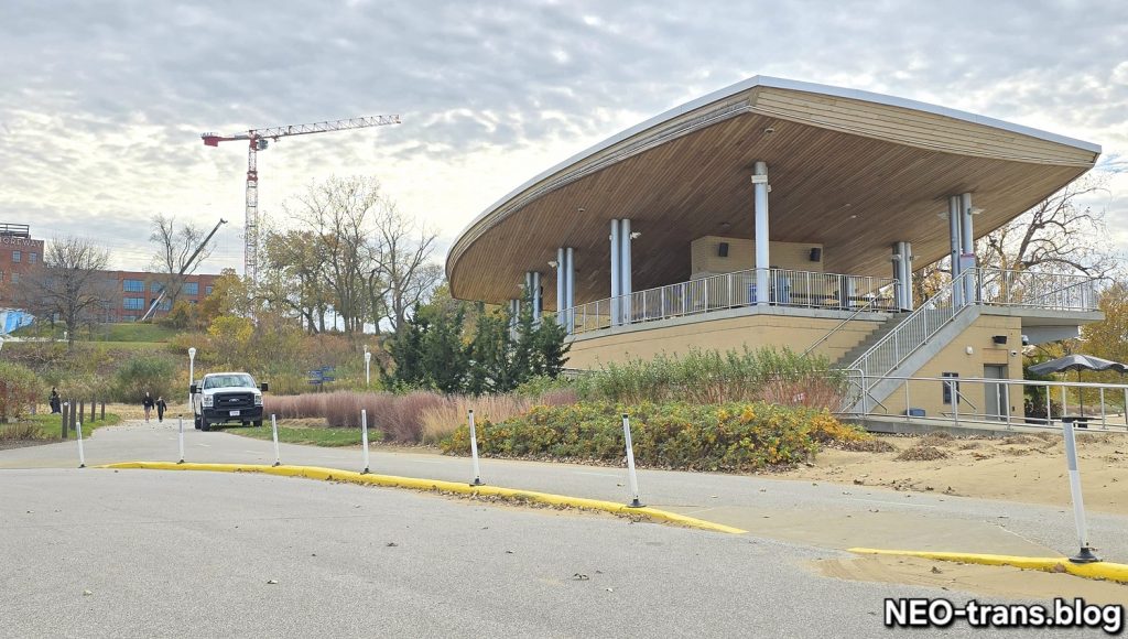 Beyond Edgewater Park’s 2017-built beach house is a new sentinel watching over Lake Erie’s waterfront. Erected earlier this month, this new tower crane is building its replacement — a 13-story luxury apartment building called the Shoreway Tower (NEOtrans).
