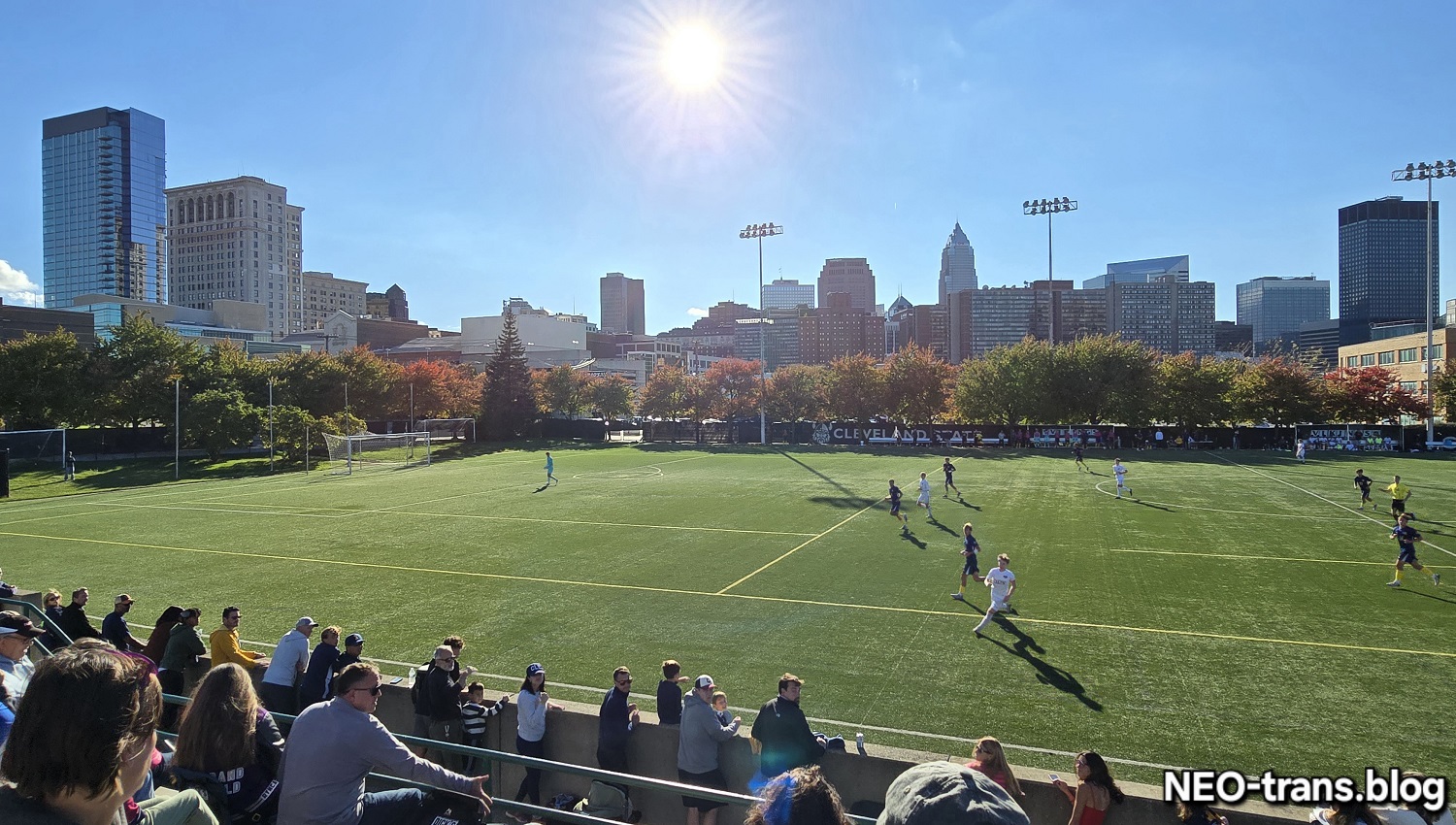 Enjoying outdoor events later the season has become possible in Cleveland due to climate change. Here, the St. Ignatius High School soccer team plays at Cleveland State University’s Krenzler Field on a sunny, mild October day (NEOtrans). CLICK IMAGES TO ENLARGE THEM.