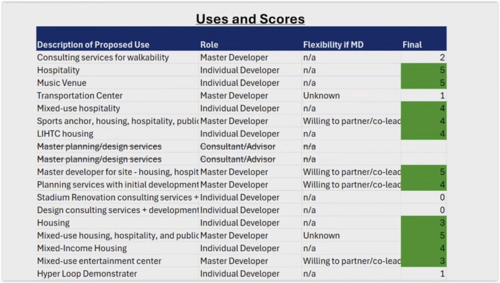 NCWDC Executive Director Scott Skinner also identified the types of programming that are favored by a five-person panel reviewing responses to a request for qualifications of potential developers issued last summer.