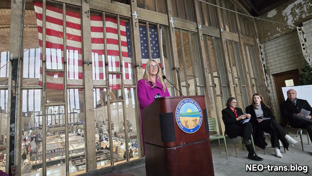 Ohio Department of Development Director Lydia Mihalik announces the latest round of Ohio Historic Preservation Tax Credits at the West Side Market. She is flanked by state lawmakers Sen. Nickie Antonio, Rep. Bride Rose Sweeney and Rep. Daniel Troy (NEOtrans). CLICK IMAGES TO ENLARGE THEM.