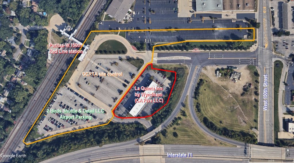The property GCRTA sold was a 2-acre plot of land to be carved out of three parcels totaling 11 acres that comprise the Puritas-West 150th Rapid Transit station and its parking lots, next to Interstate 71. Set on that 2 acres at 4222 W. 150th St. is a La Quinta Inn by Wyndham, built in 1991.