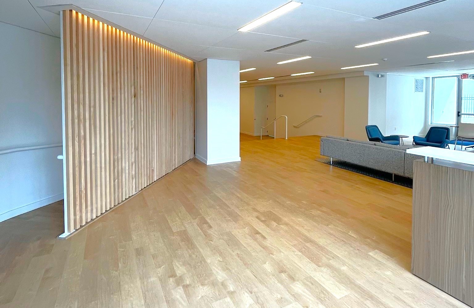 A renovated office space in the CedarTech building. While this doesn’t necessarily represent the space that Miami University will be occupying, it shows how a 70-year-old office building can be renovated for contemporary uses, including for students interning on the applications of quantum computing for healthcare purposes (Cresco).
