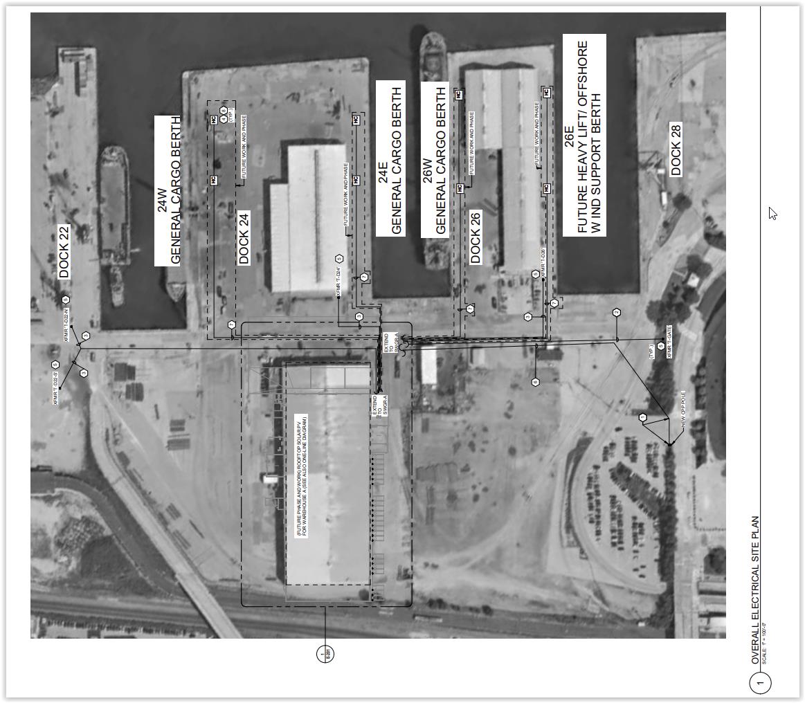 Planned improvements include construction of a vehicle maintenance and hiring hall annex adjacent to Warehouse A, featuring a two-bay garage for reach stackers and forklifts. Concrete repaving and upgrades to stormwater and electrical infrastructure will be done at Dock 22. And, bulkheads will be reinforced to strengthen waterfront infrastructure.