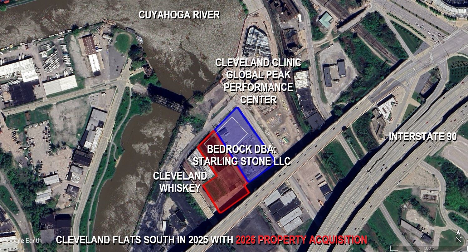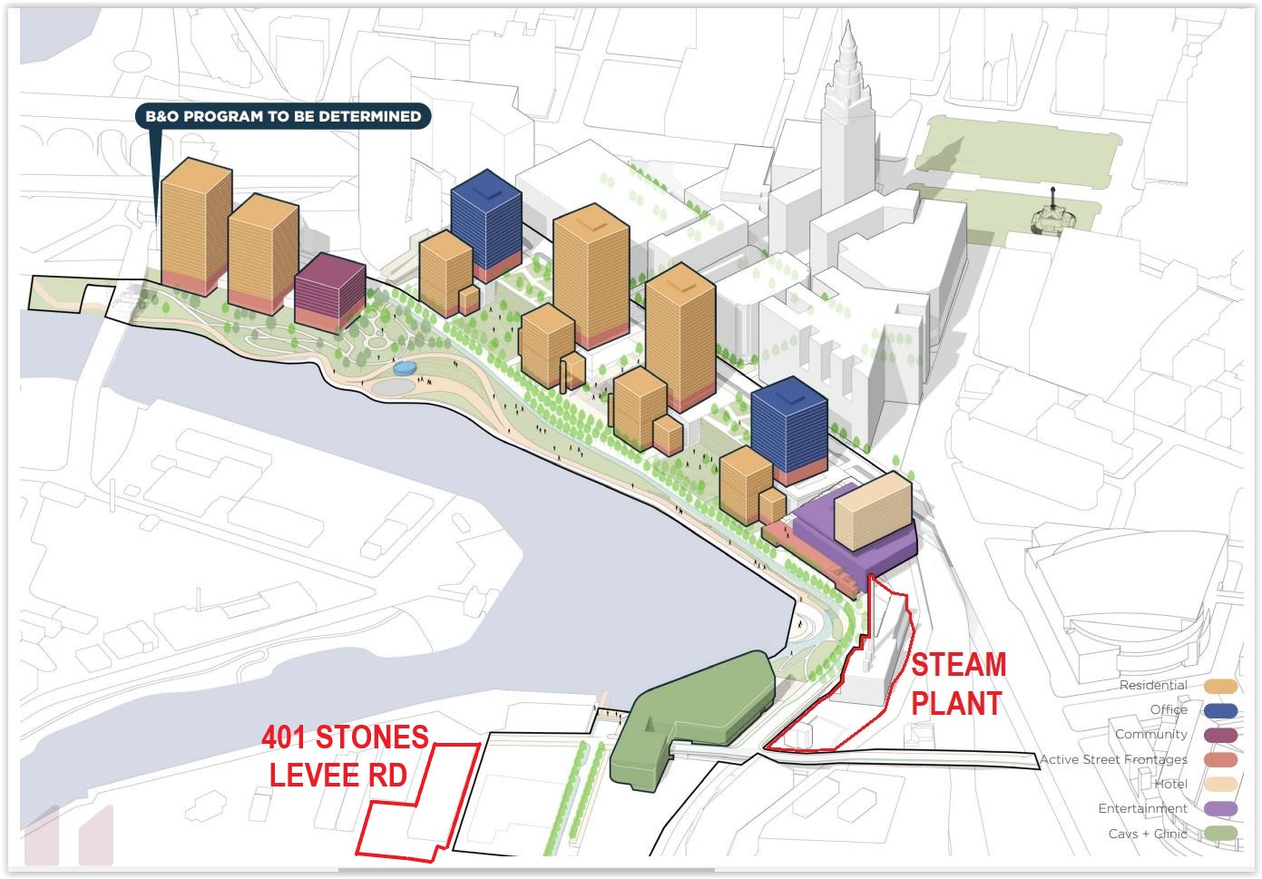 Bedrock’s Riverfront development masterplan is constantly evolving. Four months after City Planning Commission approved this final masterplan in February 2025, Bedrock added the ex-Cleveland Thermal Steam Plant property at right. And while the first Starling Stone property was in the fold at this time last year, Bedrock didn’t have a plan for it yet (MKSK).