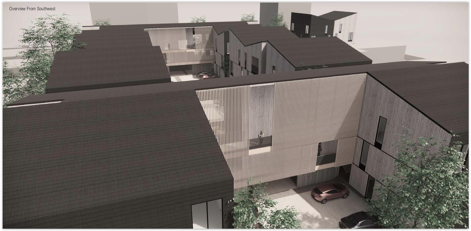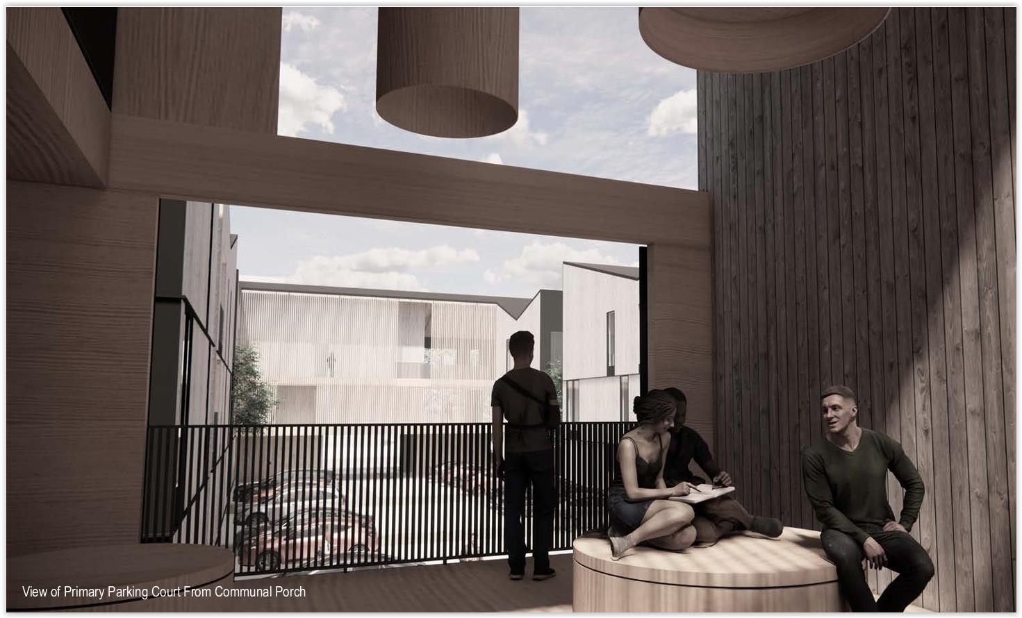 The parking courts will also double as part of the site’s stormwater management with drainage and retention below the parking areas, which will be gated for residents only. Existing on-street parking in the immediate area will be for visitors.