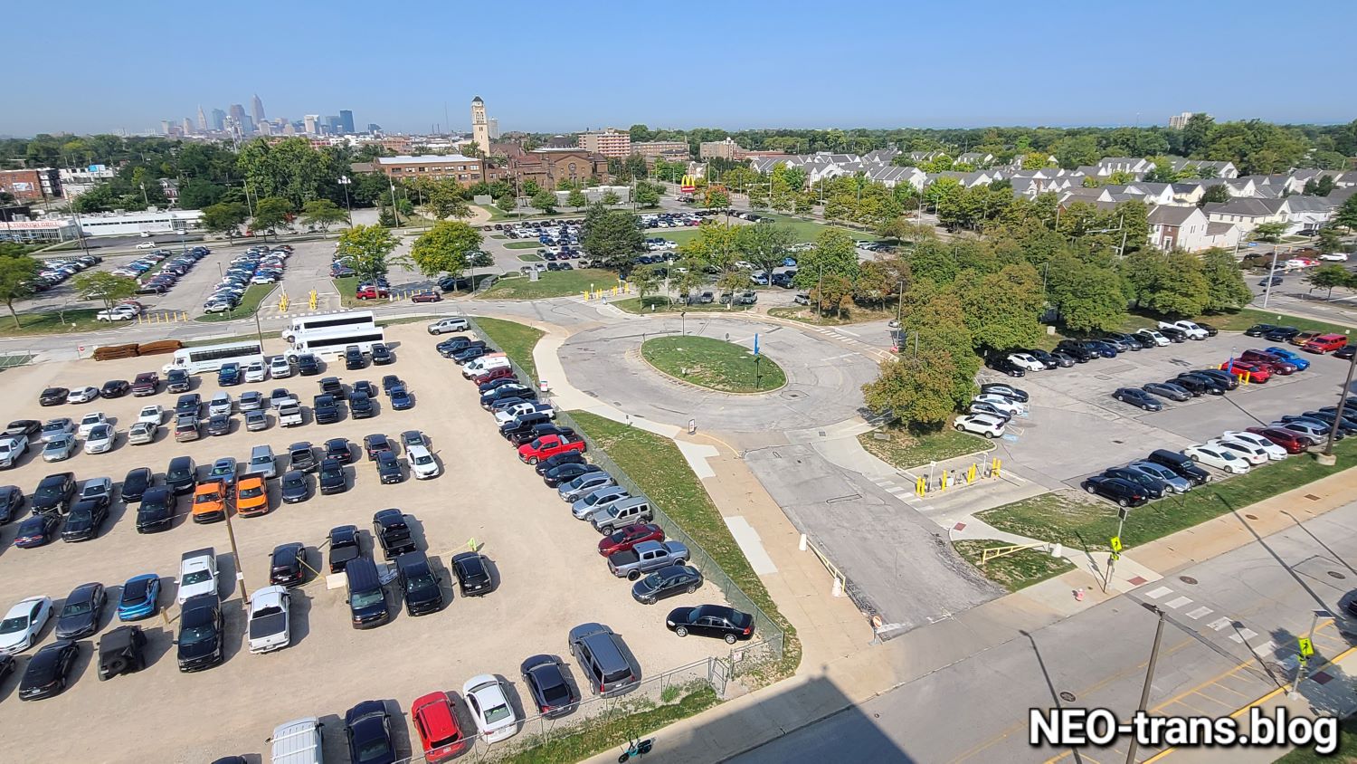 The former Cleveland Playhouse site is 11 acres. It is seen from the top of the Cleveland Clinic’s East 89th parking garage which is similar in scale to what will reportedly be built on the Playhouse site (NEOtrans).