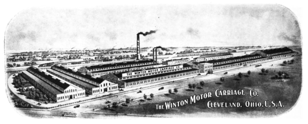 The Weston-owned properties, including those whose buildings are to be demolished, were built by the Winton Motor Carriage Co., once the largest manufacturer of gas-powered automobiles in the United States. The intersection of Berea Road and Madison Avenue is at lower left in this north-looking view (The Motor World-Wikimedia).