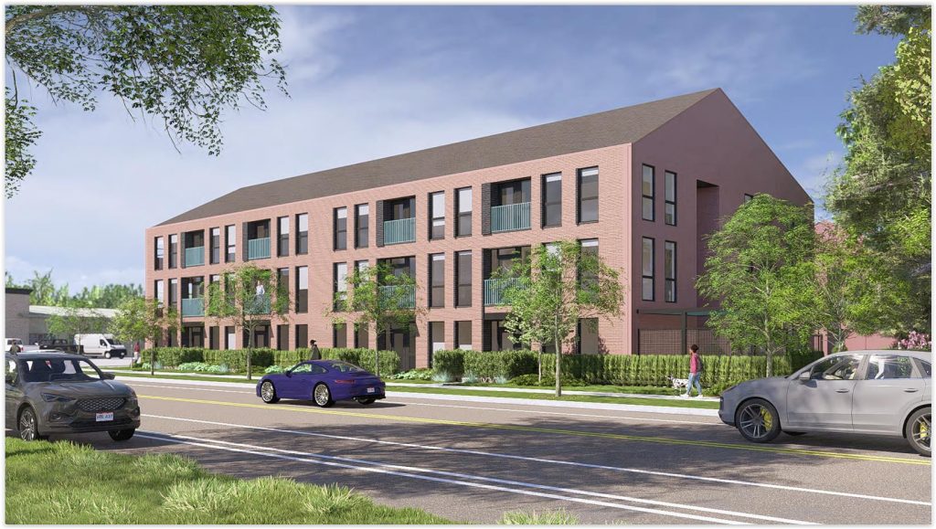 Although Hough Senior Independent Living was the first project approved under the new zoning code last summer, it was submitted to the city before the code was enacted. The 8400 Lake development was the first new, 20,000-square-foot structure to be submitted after it, on June 26, 2025. A very different plan for 8400 Lake was withdrawn several years ago.