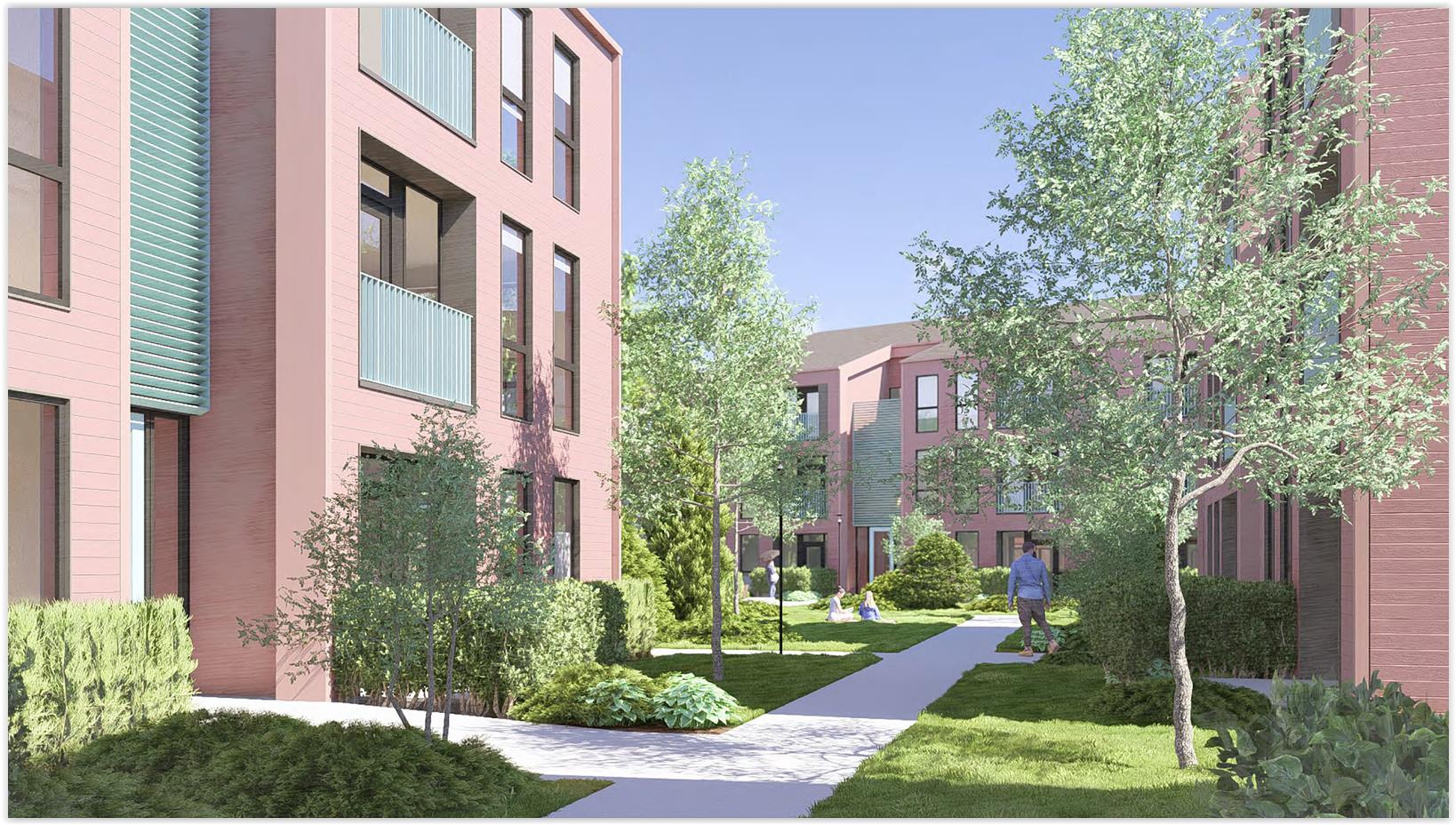Although Hough Senior Independent Living was the first project approved under the new zoning code last summer, it was submitted to the city before the code was enacted. The 8400 Lake development was the first new, 20,000-square-foot structure to be submitted after it, on June 26, 2025. A very different plan for 8400 Lake was withdrawn several years ago.