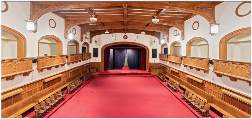 Also in the temple is the Asylum Room, which looks like a smaller version of the House of Commons complete with rich woodwork. It has a capacity for 500 persons and 400 seated, Newmark noted. Next to it is the 250-person Jester’s Lounge.