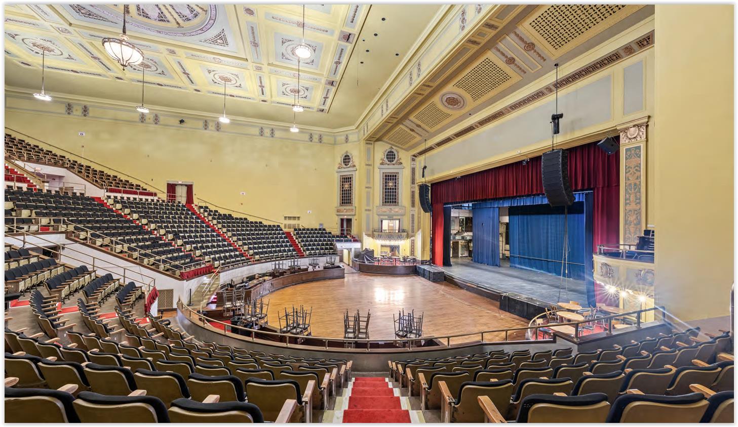 The former Cleveland Masonic Temple has several venues within the complex. The largest is the Main Theater which has a capacity for 2,500 people with 1,980 seated, complete with concession stands and a grand staircase. Alongside are updated green rooms and backstage areas.