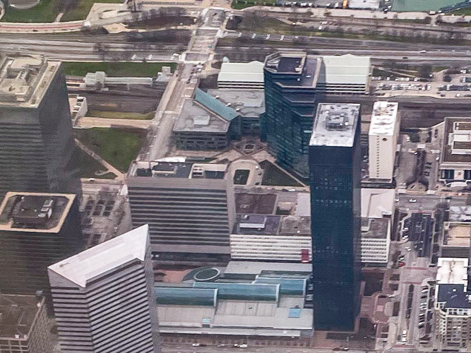 This aerial photo of Erieview Tower was taken from the window of a commercial plane en route to Cleveland Hopkins Airport (Harrison Whittaker).