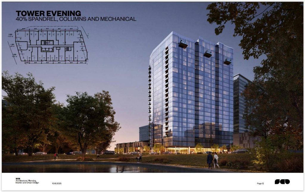 Plans for the tower show its lobby will be the at the building’s northeast corner, at Chester and MLK. South of the lobby on the MLK side, up to five for-sale townhouses are planned but are not a part of this phase to keep the financing for them separate.