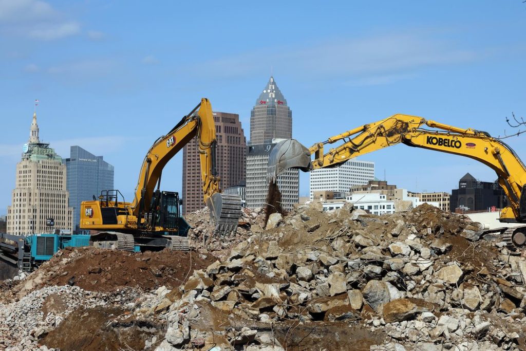 On the plus side, one of the region’s biggest megaprojects got underway today when officials from the Ohio Department of Transportation (ODOT), city of Cleveland, Cuyahoga County and others threw spades of dirt in a groundbreaking ceremony for the Interstate 90 Central Interchange Project in Downtown Cleveland.