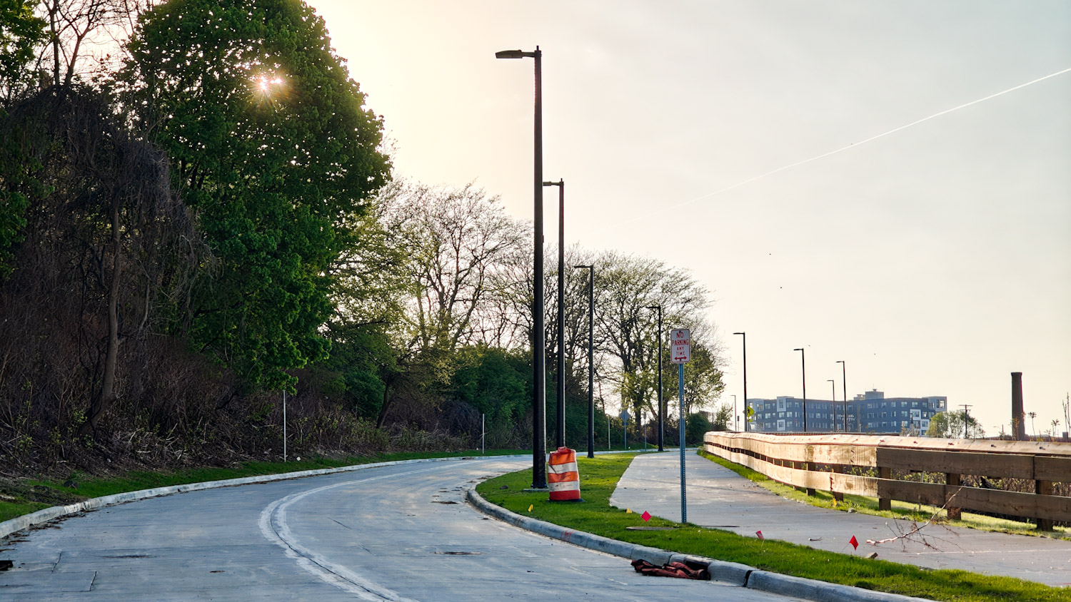 The rebuilt section of Franklin includes enhancements such as a wide sidewalk to accommodate pedestrians and cyclists. With new light posts and signs already installed, the roadway appears ready to open any day now.