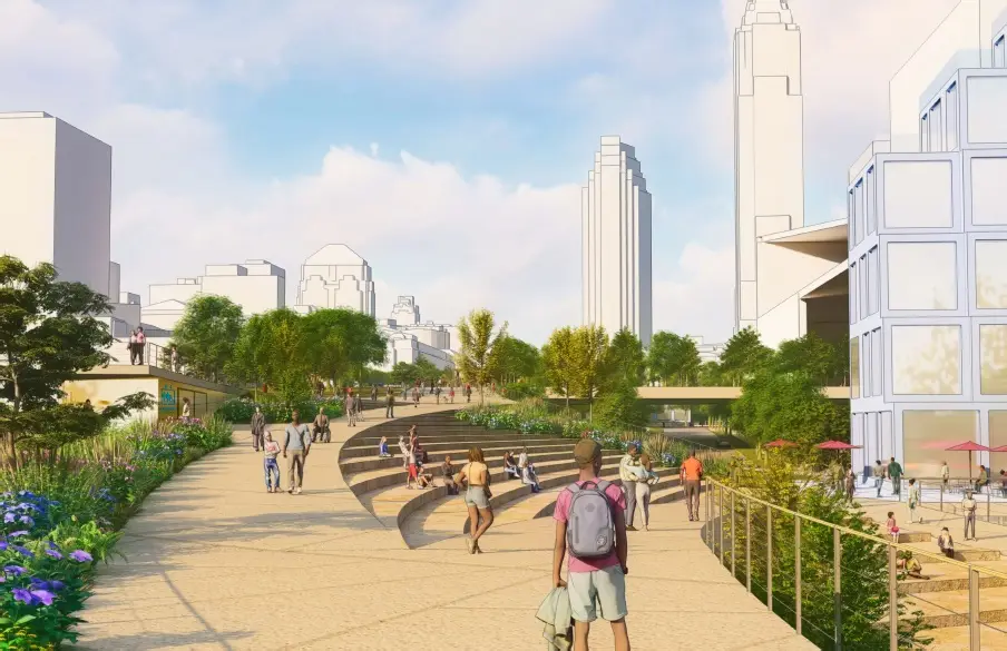 In 2021, Detroit-based developer Bedrock announced its plans to develop a long-neglected portion of the Cuyahoga riverfront with 35 acres of mixed-use development and green space. Phase 1A of the development involves the construction of a practice facility for the Cleveland Cavaliers in partnership with the Cleveland Clinic—here’s a current look at the progress so far.